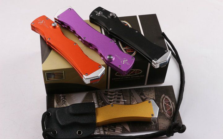 光炫4微技术直跳刀 全长:23.3CM 刃长:9.8CM 刃宽:1.8 CM 刃厚:0.31CM 刀刃材质:9CR18MOV 柄材:铝合金 刀型:直跳 锁定类型:按钮锁 重量:250克(含包装) 附件:Kydex鞘,说明书,彩盒,四色任选。 整刀用CNC,电脑锣,线切割制作而成,手工精密度非常高,绝对不会缩头,很值得收藏的一把刀,数量有限。