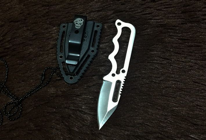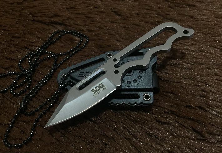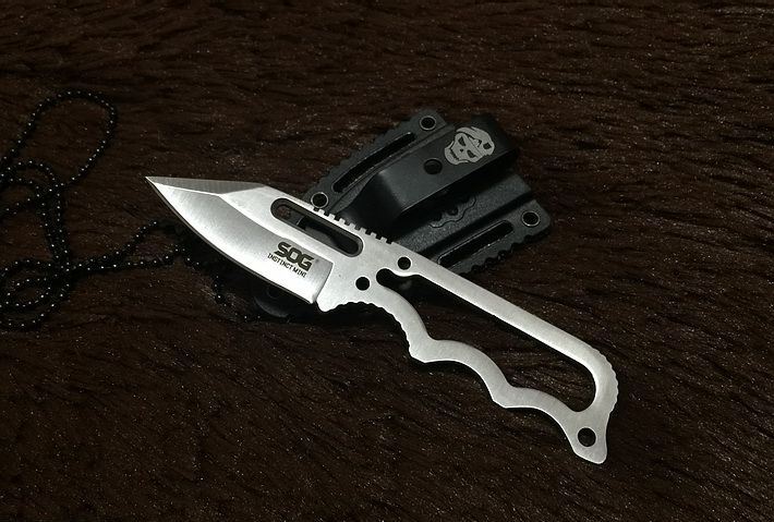 SOG肥牛手刺 全 长: 12CM 刃 长: 5CM 刃 厚: 0.35CM 刃 材: 440C 硬 度: 56HRC 表 面: 砂光 柄 材: 全钢 刀 鞘: 多功能式K鞘