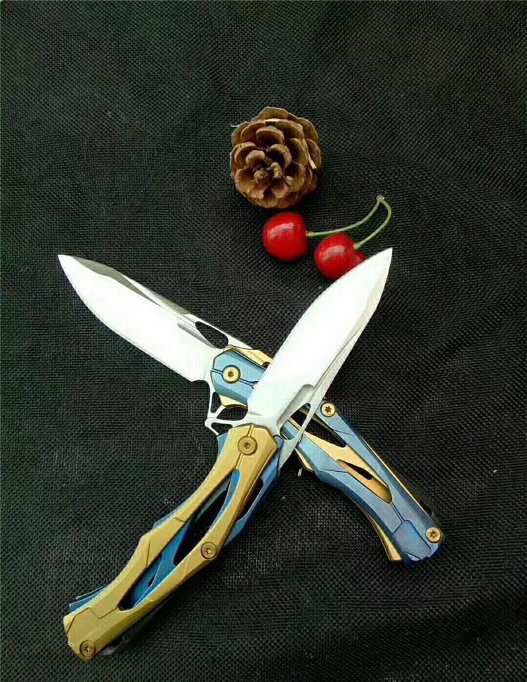 变型全钢彩钛金刚折刀 全长:225mm 刃长:96mm 柄长:130mm 刃宽:30mm 刃厚:3.5mm 刃材:8铬18钼(深冷处理) 重量:369g(含包装物) 硬度:58-61HRC 表面:拉丝 柄材:手柄全钢手柄电脑椤缕空、底骨全钢电镀处理。 刀夹:全钢 锁型:分体插入锁杆式线锁 螺丝:所有螺丝420不锈钢、硬度HRC45、全CNC精雕加工 结构:分体插入锁杆式线锁结构、锁刀接触镶嵌合金粒、陶瓷定位珠、内置平面滚针轴承垫片。 其他:礼品盒