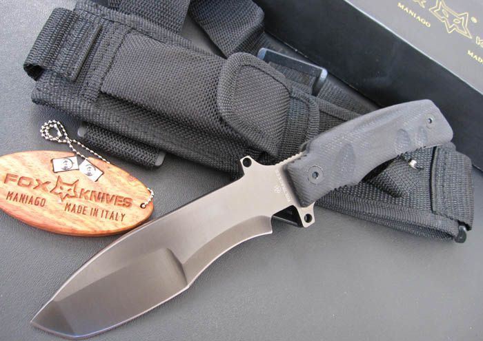 FOX(狐狸)狙击手格斗刀I号 全长:26cm 刃长:12.5cm 刃宽:3.8cm(最宽处) 刃厚:0.62cm 刃材:440C 硬度:57HRC 表面:镀钛 柄材:加厚G10 柄长:12cm 刀重:480克 总重:740克(含刀套和包装物) 品质:高品质,刃口锋利 其他:两级开刃,刀背圆弧 附件:尼龙刀套、挂带、FOX专用磨刀器