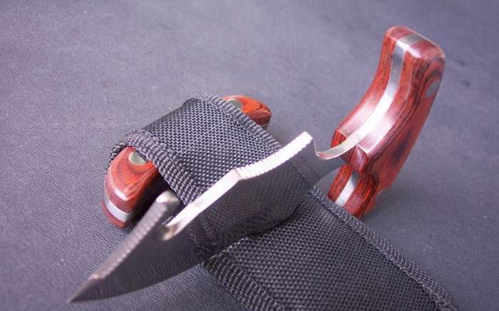 阿启镜光版手刺 全 长: 12cm 刃 长: 7cm 刃 材: 440 硬 度: 53HRC 表 面: 镜光 刃 厚: 0.33cm 柄 宽: 7.6cm 柄 材: 彩木 尼龙鞘 重 量: 125克