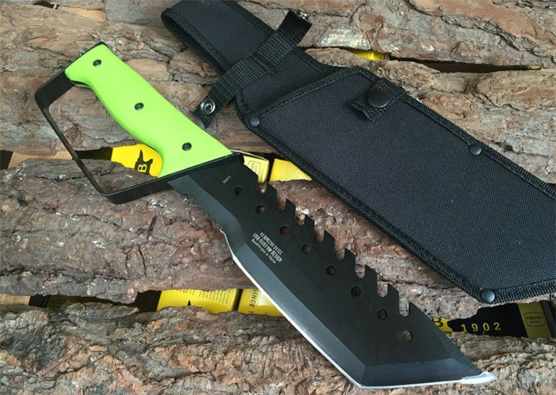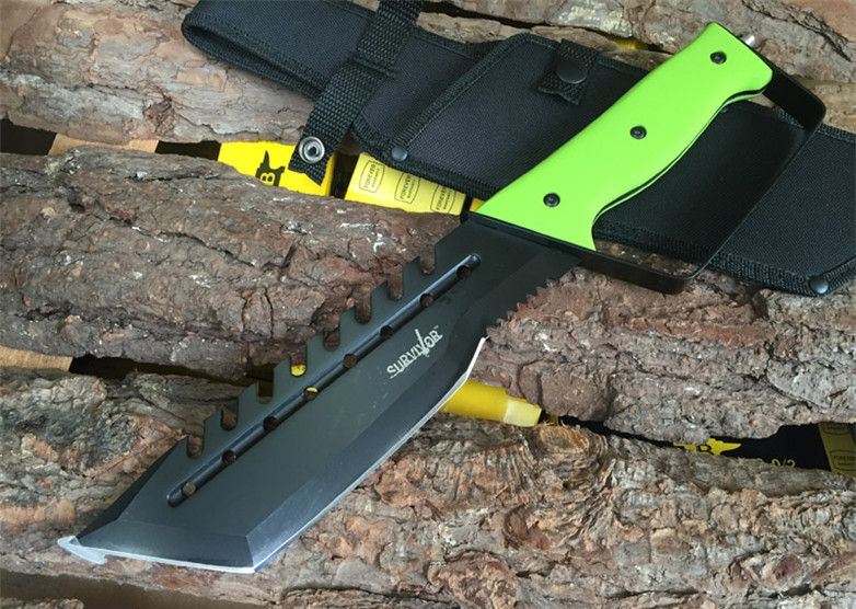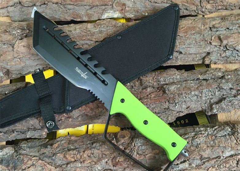 Survivor幸存者户外求生刀(绿柄) 全长:36.5CM 刃长:20.5CM 柄长:13.5CM 刃厚:4MM 刃材料:440 柄材料:花梨木,绿柄 重量:625克
