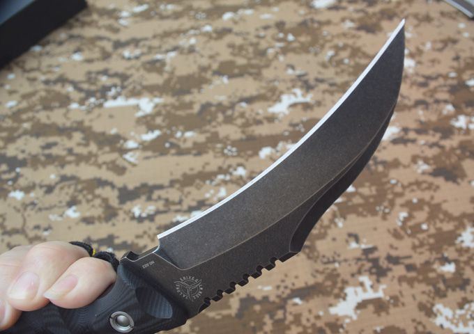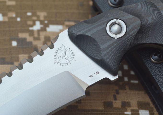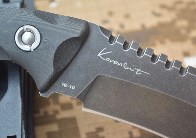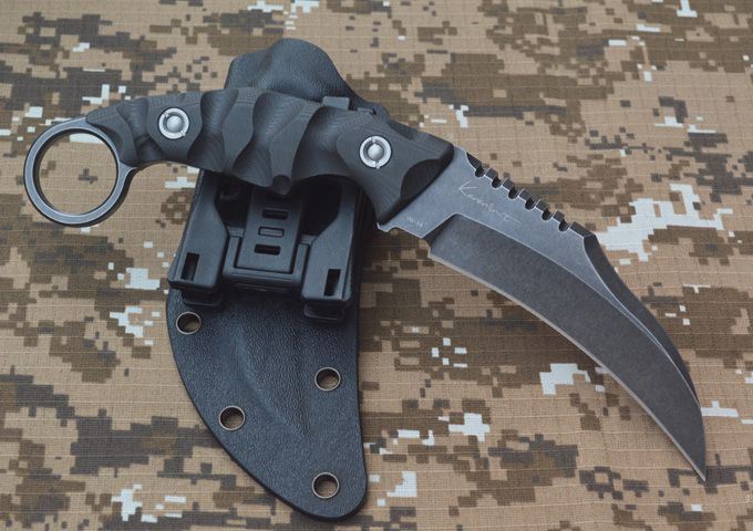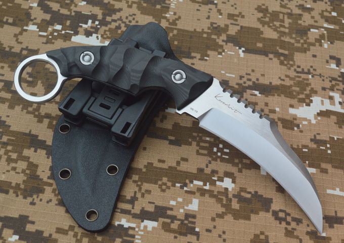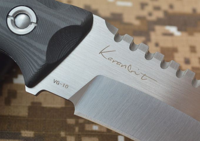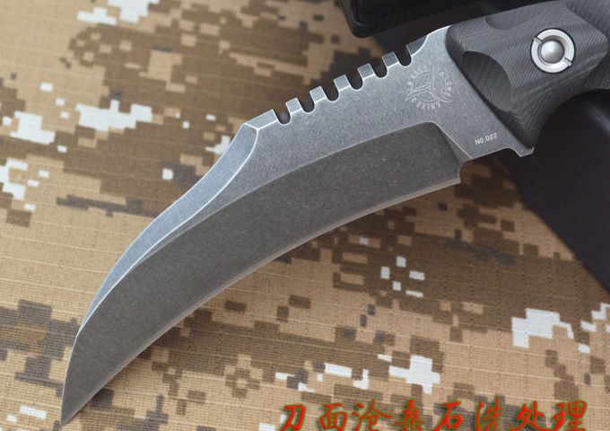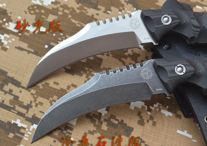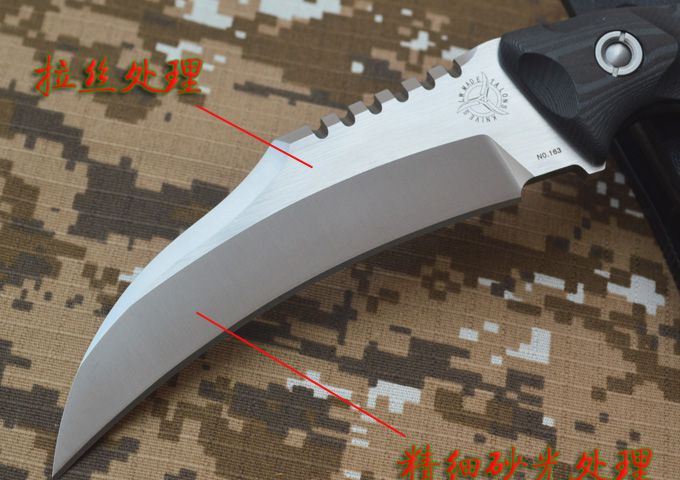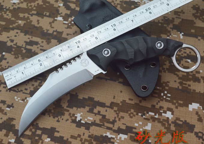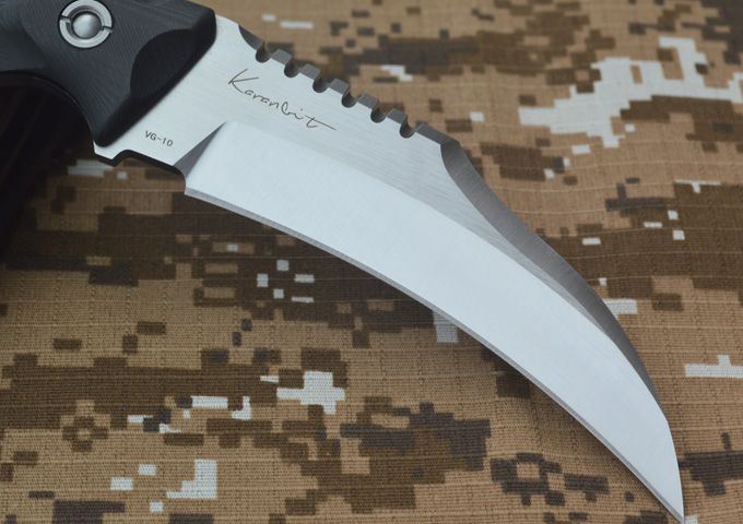 VG-10钢:又名“V10金”。日本“武生特制钢”之「V金10号」不锈钢材,乃「V金」,系钢材之最优级别。诞生于日本越前地区,作为日本全国乃至世界范围内最优质钢材而为人们所熟知。其中V表示的是“VirginSteel”的意思。VG10钢是往严格筛选的高纯度原料(Virgin Steel)中加入C(碳)、Cr(铬)、Mo(钼)、V(钒)、Co(钴)等元素的高碳素不锈钢。含碳量约1%, 含钼1.2%及钴1.5%, 经热处理後可达HRc60-62之硬度。VG-10加工性优, 韧性及耐蚀性皆强, 多被应用于日制之优质刀具 (注:因爪刀的使用特性 在形制方面刀尖内勾且偏薄 故本鹰嘴爪刀在热处理硬度方面控制在60HRC以内 )
