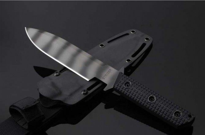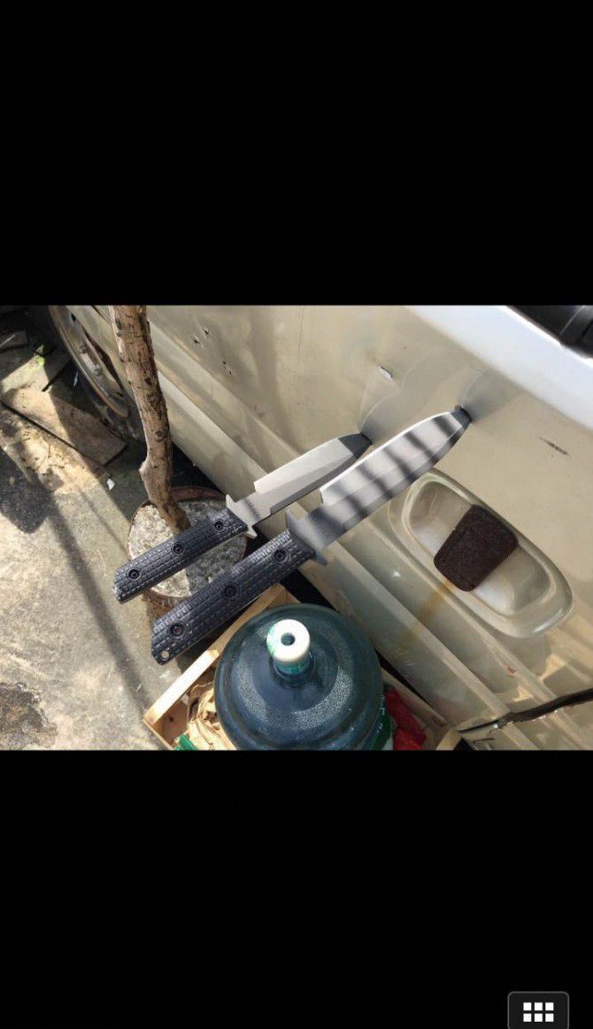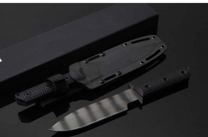 全 长:290mm 刃 长:150 mm 柄 长:118mm 刃 宽:33.1mm 刃 厚:6.0mm 锁 型:定锁 开刃方式:二次开刃 刃 材: 一胜百D2钢材 热处理方式:真空淬油深冷热处理 硬 度:不低于58-60HRC 柄 材:黑色G10 净 重:550克(不含包装) 刀 鞘:K鞘 类 型: 以锋利度.韧性保持度.砍削最出色,超强立体感刃线 包 装: 精美黑纸盒