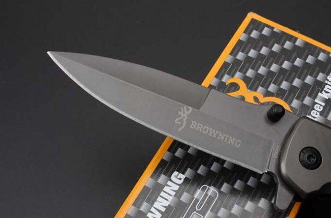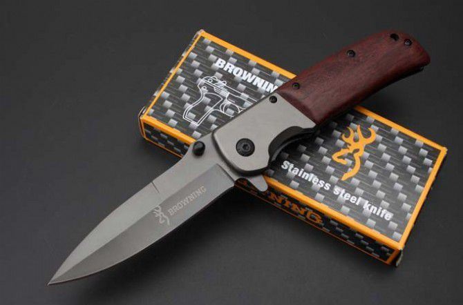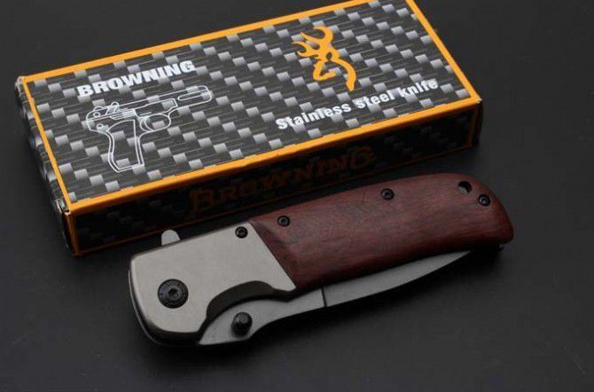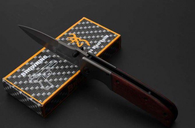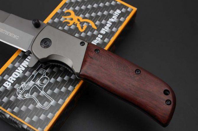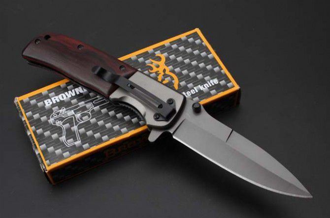 勃朗宁DA86快开折刀 全 长:227mm 刃 长:100mm 柄 长:125mm 刃 宽:28mm 刃 厚:3.2mm 刃 材:5Cr15Mov 重 量:227g(含包装) 硬 度:57HRC 表 面:灰钛 柄 材:钢+木酸枝 锁 型:快开 其 他:配彩盒