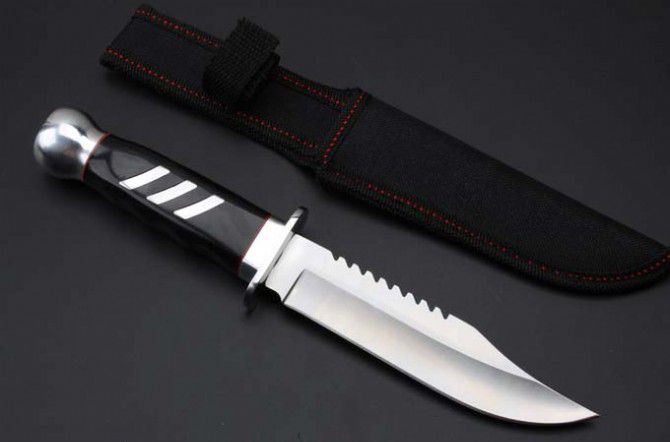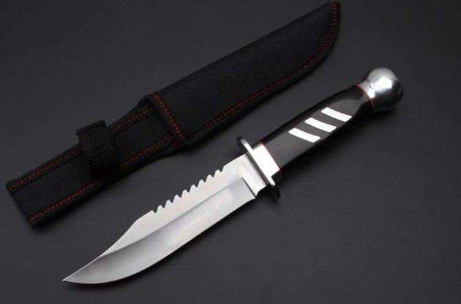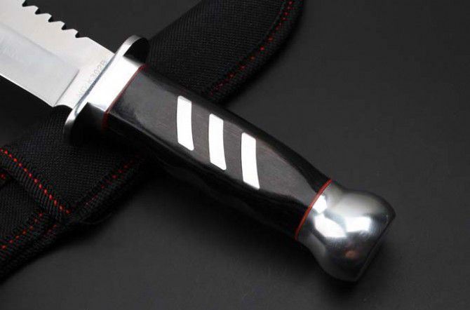 K-302B直刀(中号) 全 长:264mm 刃 长:145mm 柄 长:115mm 刃 宽:31mm 刃 厚:3.4mm 刃 材:3Cr13Wov 重 量:238g(含包装) 硬 度:55HRC 表 面:砂光 柄 材:黑色彩木+铝头 锁 型:定锁 其 他:配尼龙套