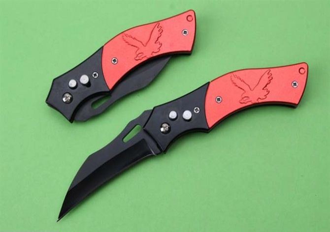 夜鹰爪子(特色自动跳刀) 全长:19.5cm 刃长:9.5cm 刃宽:2.5 刃厚:0.23 柄长: 13.5 刃材:13cr13 硬度:56HRC 总重量:127g(含包装物) 刃材料:不锈钢 柄材料:钢头+铝片