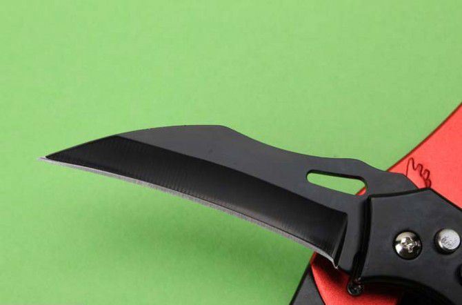 夜鹰爪子(特色自动跳刀) 全长:19.5cm 刃长:9.5cm 刃宽:2.5 刃厚:0.23 柄长: 13.5 刃材:13cr13 硬度:56HRC 总重量:127g(含包装物) 刃材料:不锈钢