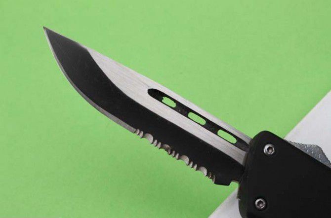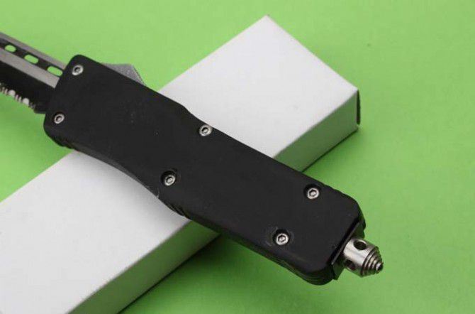 伤齿龙单锋半齿(小号) 全 长:218mm 刃 长:88mm 柄 长:133mm 刃 宽:20mm 刃 厚:2.8mm 刃 材:5Cr13Mov 重 量:218g(含包装) 硬 度:56HRC 表 面:氧化黑拉砂 柄 材:锌铝合金 锁 型:弹簧刀