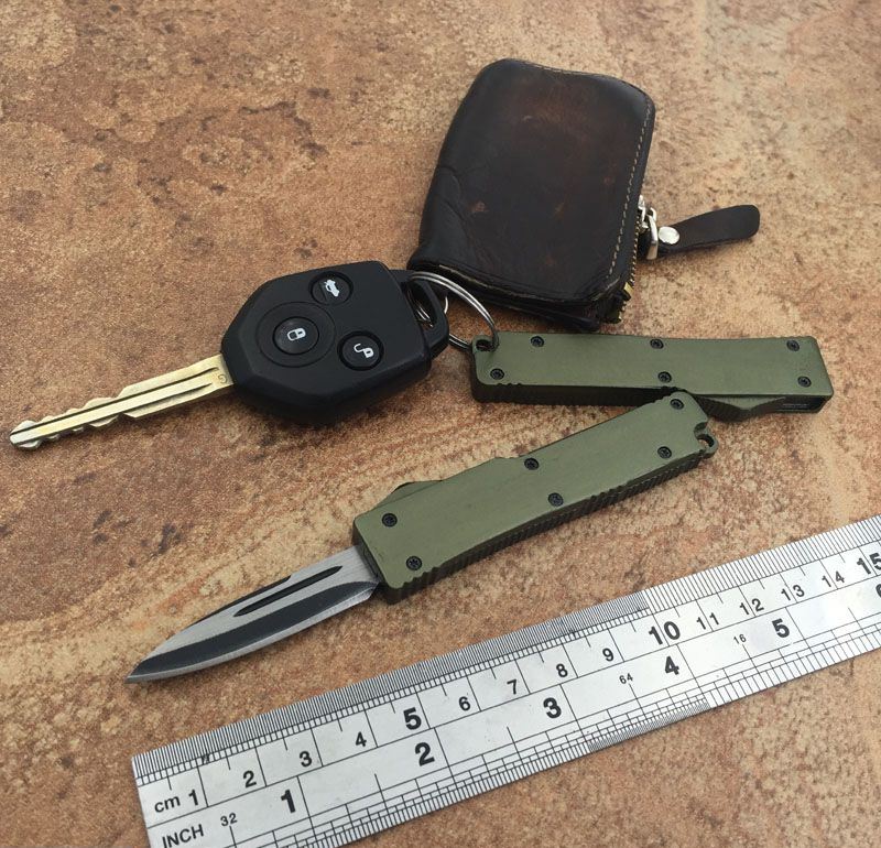 Mini直跳刀航空铝柄(军绿) 展开 :13CM 收起 :8CM 柄材料:氧化航空T6铝 刀刃 :440 重量 :30克