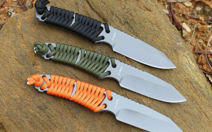 戈博BG野外求生直刀K鞘 全 长:19.5cm 刃 长:8.6cm 刃 厚:4.2mm 刃 材:AUS-8A 柄 材:高密度尼龙绳 硬 度:58Hrc 表 面:钛离子 刀 套:ABS鞘 刀 重:90g 总 重:210g 刃 区:机械刃/切削 配 件:吸卡,说明书