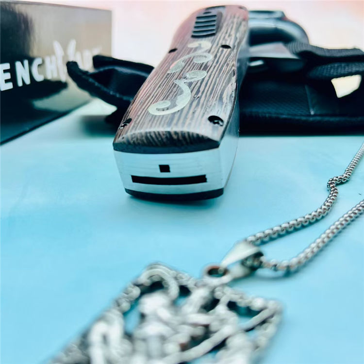 全 长:22.0cm 刃 长:9.3cm 刃 厚:2.2mm 刃 材:D2 硬 度:59HRC 刀 重:283g 毛 重:364g 表 面:镀钛 柄 材:锌铝合金+豹纹木 刀 鞘:尼龙