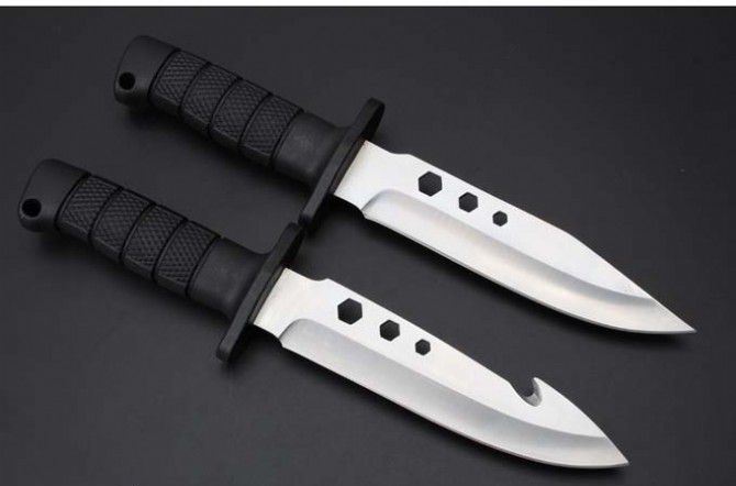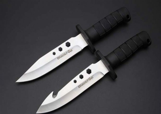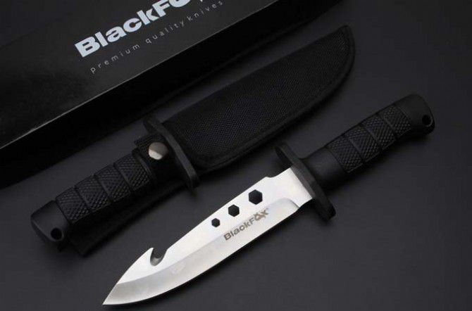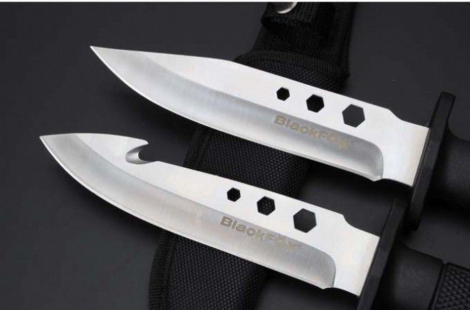 狐狸装备救援刀(带钩、通用版) 全长:28.8cm 刃长:15.5cm 柄长:11.8cm 刃宽:3.5cm(最宽处) 刃厚:0.42cm 刃材:440C 硬度:56HRC 表面:沙光 柄材:ABS 总重:320克(含刀套彩金)