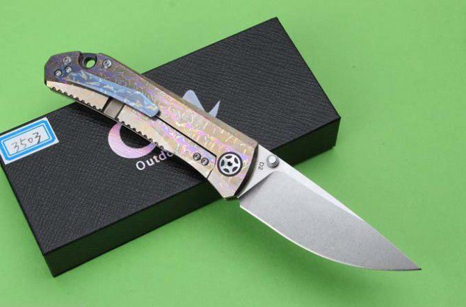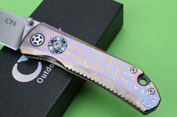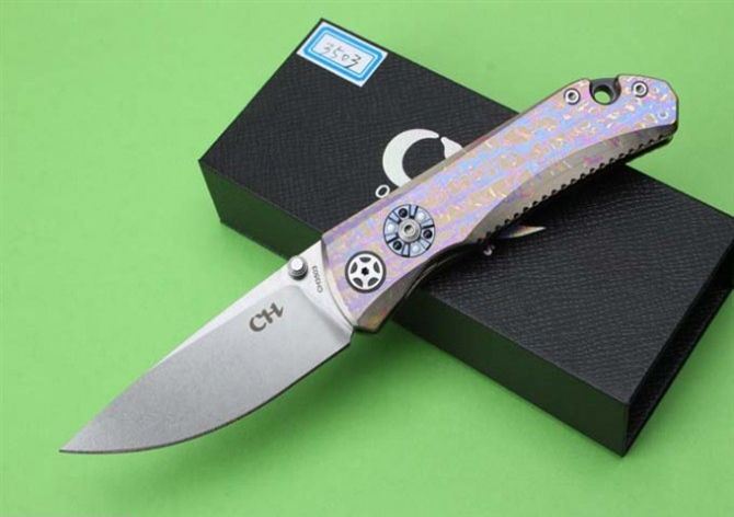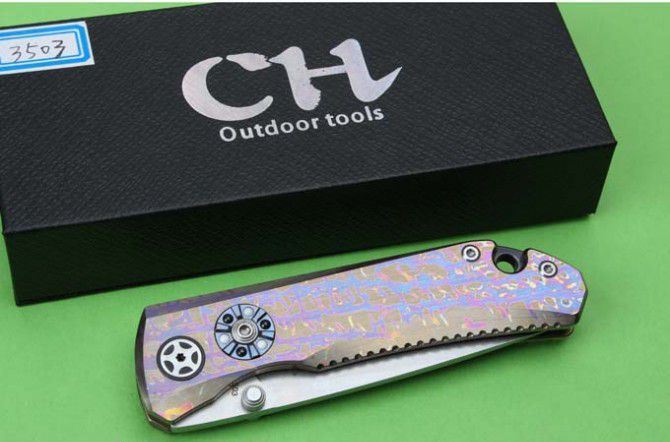 CH3503高端全钛柄折刀(全手工版) 总体长: 20.7mm 叶片长度: 88mm 封闭长度: 120mm 叶片厚度: 3.9mm 刀片表面处理:全手工打磨 重量:110克 叶片材料: D2钢 处理材料: 钛 硬度: 58-60HRC 表 面:石洗 系统: 球轴承系统(陶瓷球轴承)