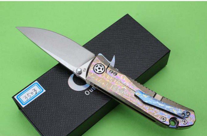 最新的拔手钉快开方式,开合更加顺畅,全钛刀柄,电解花纹;刀片采用D2材料,全手工打磨,线条流畅;最高要求的精准的外六角止位钉,更显工艺高超;内嵚式合金锁位片,使刀柄表面光滑,给人最美观感!这就是全新的