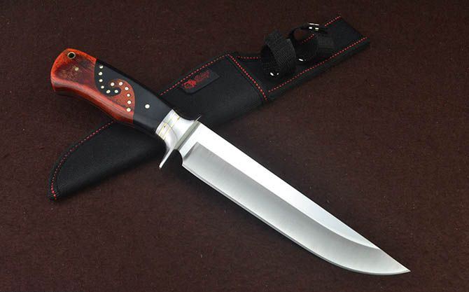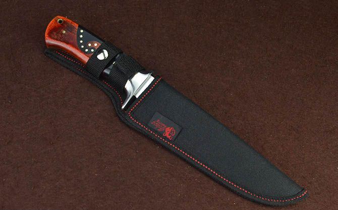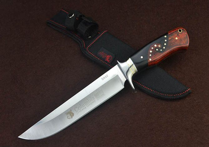 哥伦比亚SA52战术直刀 全 长:31cm 刃 长:18cm 刃 宽:3.6cm(最宽处) 刃 厚:3.8mm 柄 长:12.4cm 表 面: 镜光+拉丝 刃 材: 3CR13 硬 度: 57HRC 柄 材: 钢头+拼双色进口彩木 重 量:356克(含包装) 包 装:尼龙套