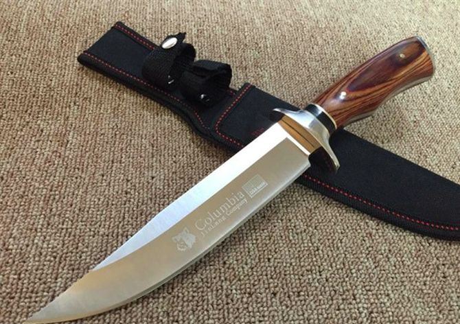 哥伦比亚SA57战术直刀 全 长:31.5cm 刃 长:18cm 刃 宽:3.6cm(最宽处) 刃 厚:3.9mm 柄 长:13.5cm 表 面: 拉丝+镜光 刃 材: 3CR13 硬 度: 57HRC 柄 材: 双钢头雕花+进口彩木 重 量:376克(含包装) 包 装:尼龙套