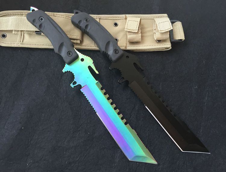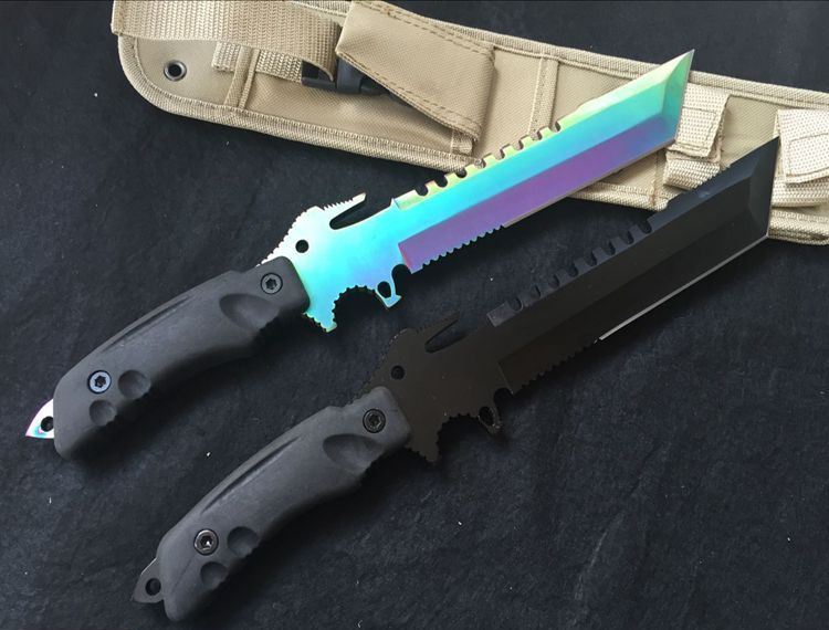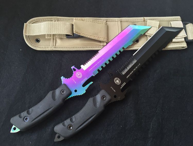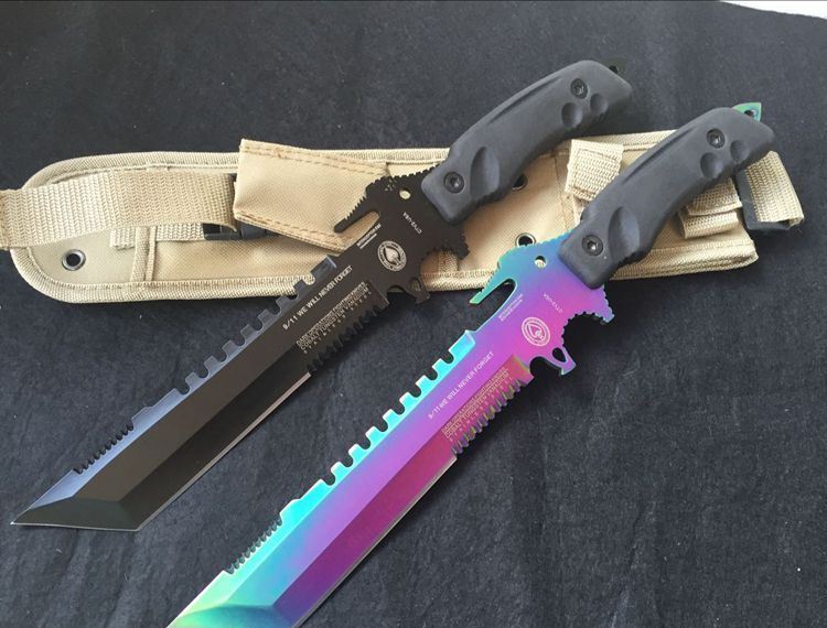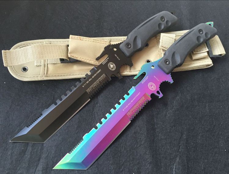 方头夜魔911直刀(彩钛、全黑) 全 长:355mm 刃 长:180mm 柄 长:130mm 刃 宽:35mm 刃 厚:6.3mm 刃 材:5Cr13Mov 重 量:520g(含包装) 硬 度:57HRC 表 面:镀彩 柄 材:ABS塑胶 锁 型:定锁 其 他:配尼龙战术刀套