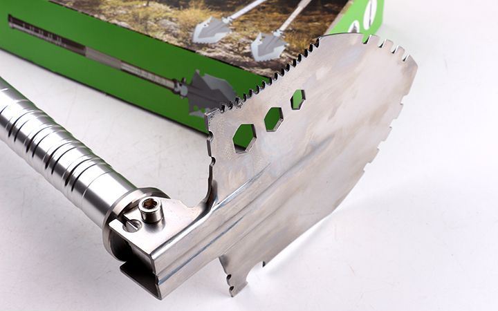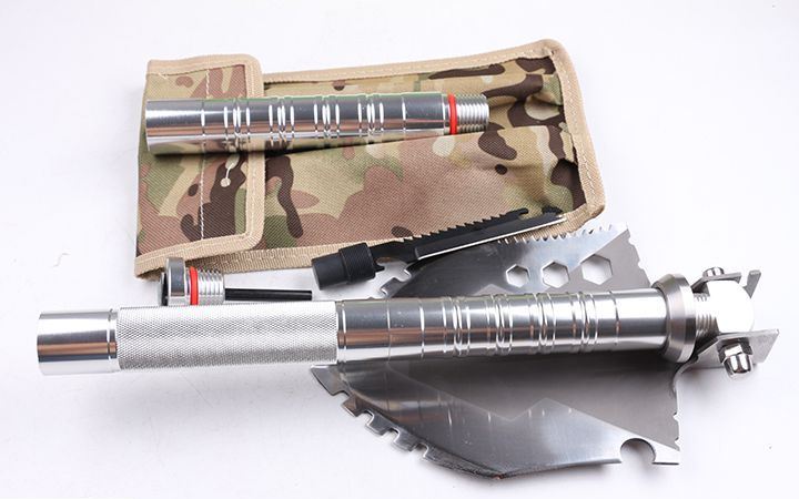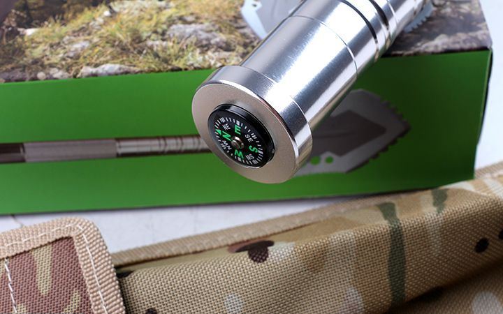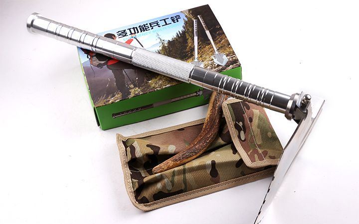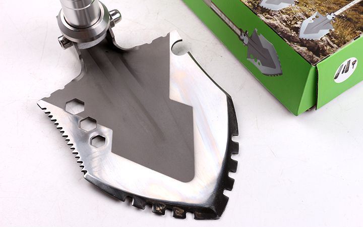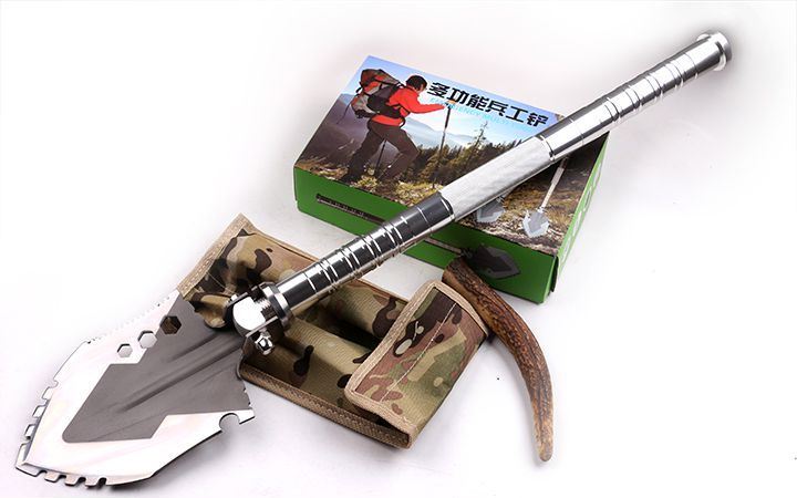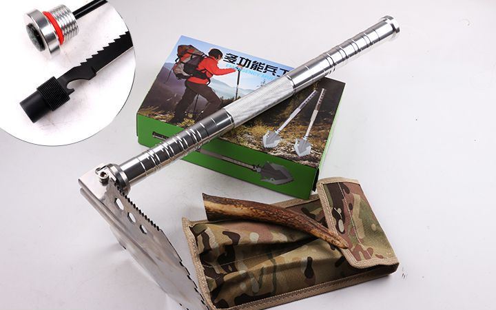 功能:有铲,锄 ,锯,刀,开瓶器,打火棒,指南针等功能,在生产工艺上采用上好淬火高碳钢,增加强度,抗磨损,抗腐蚀,耐高温等优势.有把铲在手,登山,外出永不怕。
