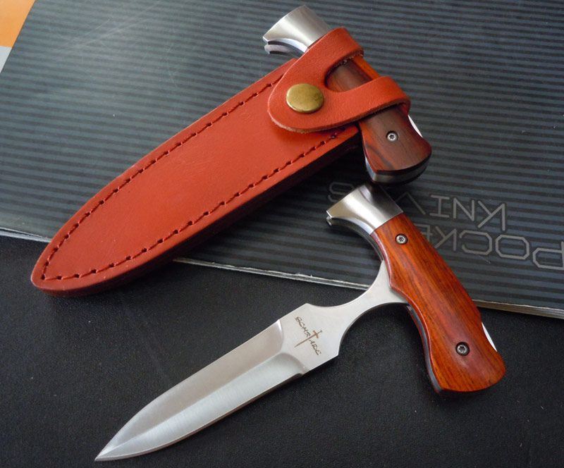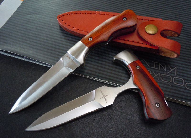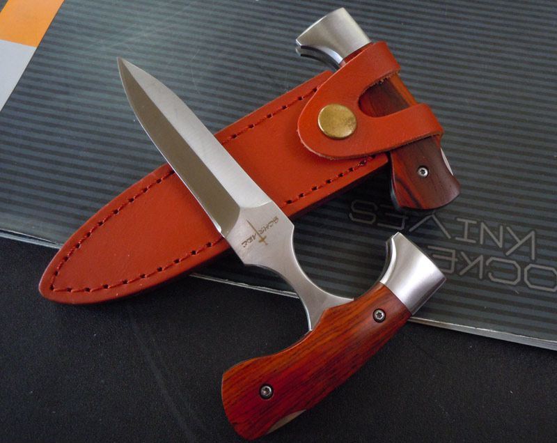 美国SCHRADE施莱德折刀手刺,设计精美巧妙,手柄采用钢架铆红酸枝木,集小直刀,手刺两用功能,双位锁定精确,实用性超强,配送小皮鞘,非常适合贴身护卫和收藏