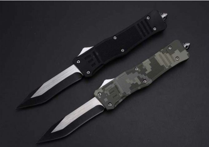 伤齿龙161单锋全刃(黑色柄和披履) 全 长: 23.8cm (含尾锥长度) 刃 长: 9.3cm 刃 厚: 2.8mm 刃 材: 440 硬 度: 58HRC 总重量: 369克(含包装物) 表 面: 黑色+披履 柄 材: 锌铝合金 刀 鞘: 尼龙 锁 闭: 弹簧直出