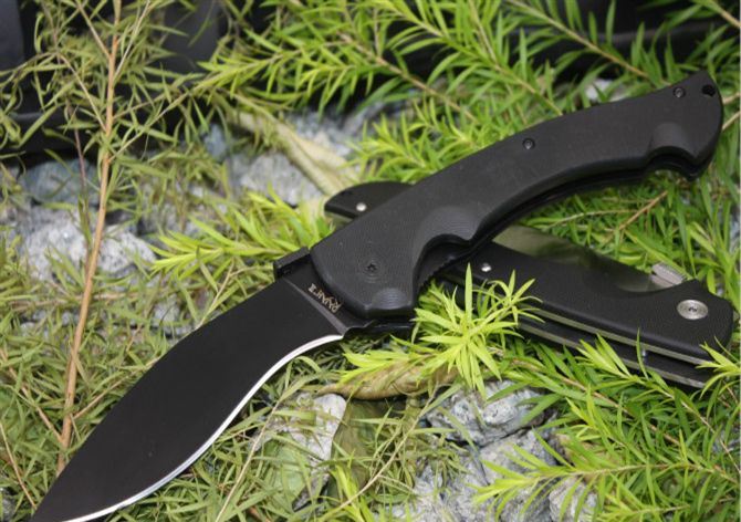 冷钢COLD大狗腿折刀(全黑版) 全长:27.2cm 刃长:12cm 柄长:15.cm 刃厚:0.36cm 刃宽: 3.2cm 刃材: 5CR15MOV 柄材: 黑色G10 硬度: 56HRC 净重:250克 锁定:线锁 表面处:全黑色