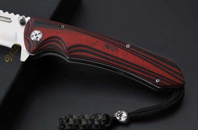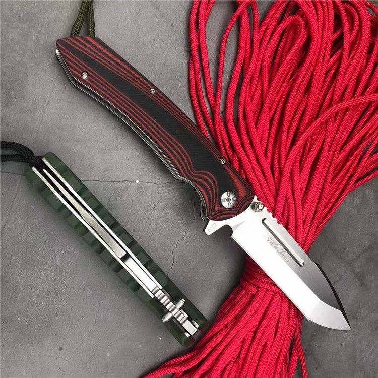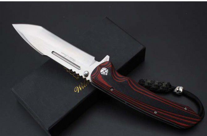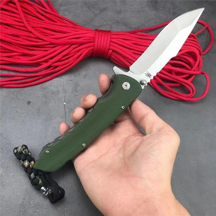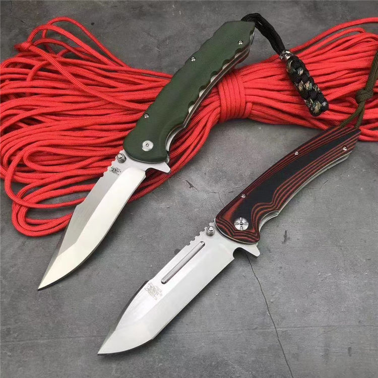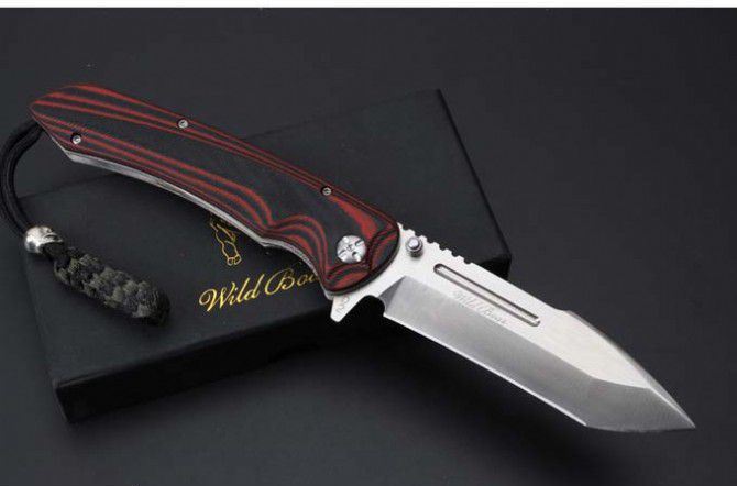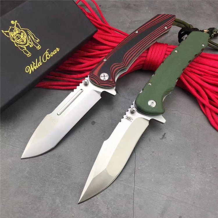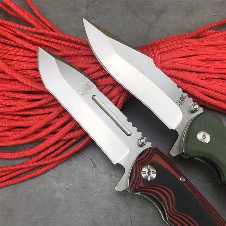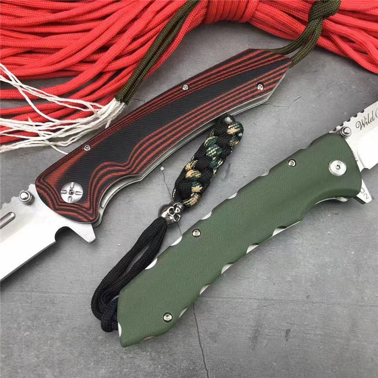 山猪猎鹰大折刀 全 长: 25.1cm 刃 长: 11.3cm 柄 长: 138cm没 刃 材: D2钢 硬 度: 59 表 面: 金属拉丝伴沙光 刃 厚: 0.65cm 柄 材: 双色 G10 刀 重:222g 总 重: 292g