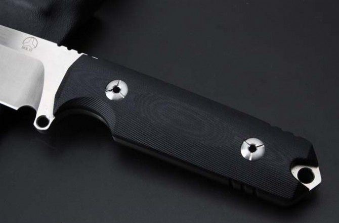 全 长:265mm 刃 长:131mm 刃 厚:6.0mm 刀 宽:35.5mm 刃 材:D2 硬 度:不低于60-61HRC 柄 材:黑色G10 净 重:364克(不含包装) 刀 鞘:K鞘 热处理方式:真空淬油深冷热处理 开刃方式:二次开刃 表 面: 精美纯手工砂光,幼拉丝