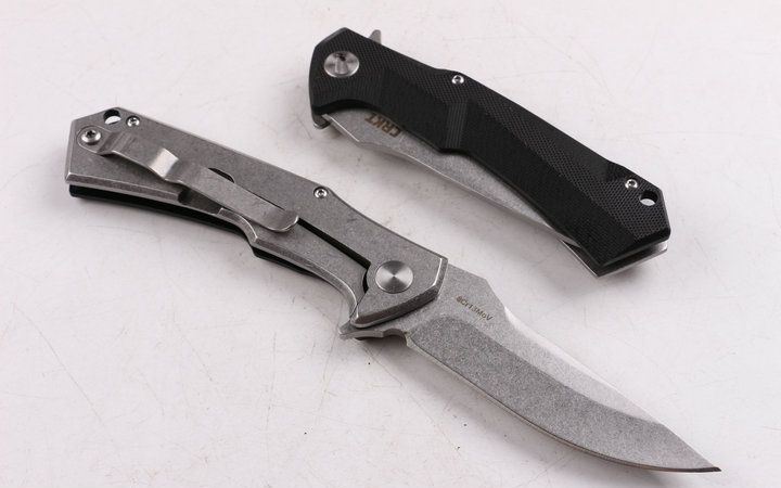 哥伦比亚CRKT黑道士折刀(石洗) 全 长:20.1cm 刃 长:8.5cm 柄 长:11.6cm 刃 宽:2.3cm 刃 厚:3.4cm 刃 材:8CR13MOV 重 量:170g(含包装) 硬 度:58HRC 表 面:石洗 柄 材:正面黑色G10,反面全钢石沙 锁 型:侧锁 其 他:原厂礼品盒