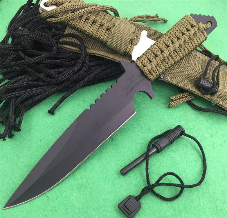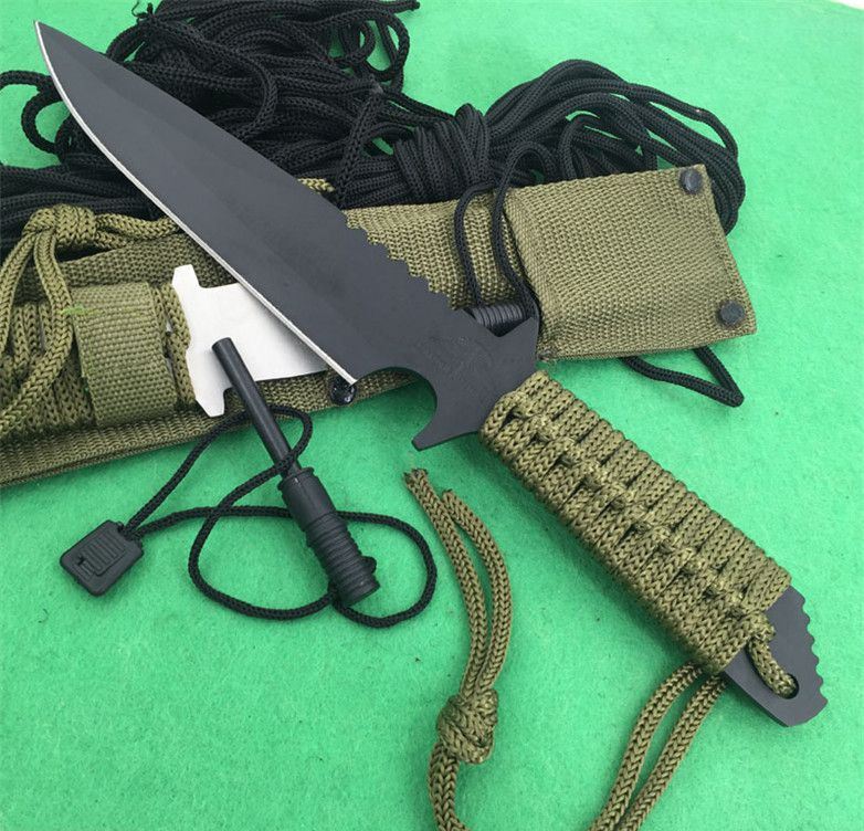 US AIRBORNE FREEFALL 美国空降兵绳柄军刀,一体龙骨结构,刀柄用伞绳编织而成,简单实用,附送火石条