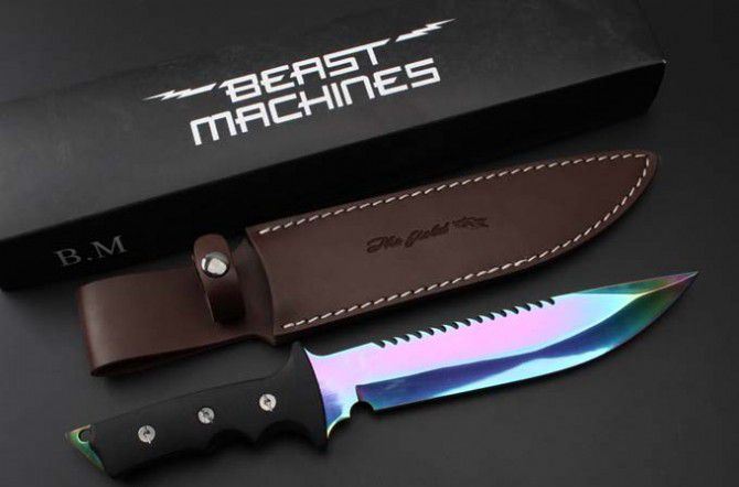 野战狼复仇直刀(彩钛版) 全 长:355mm 刃 长:222mm 柄 长:135mm 刃 宽:40mm 刃 厚:5.8mm 刃 材:8Cr18Mov 重 量:896g(含包装) 硬 度:58HRC 表 面:镜光彩钛 柄 材:黑色G10