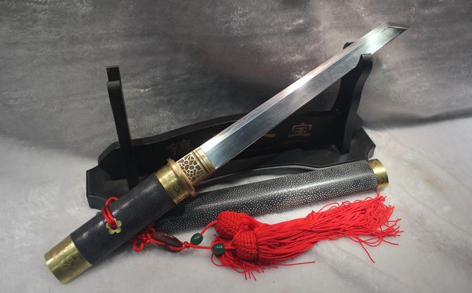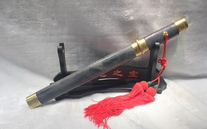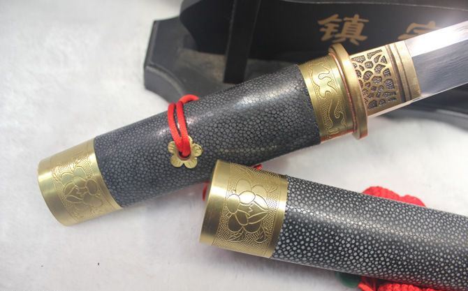 全长:52.5cm 刃长:33cm 柄长:16cm 刃宽:3.2cm 刃厚:0.58cm 鞘材:硬木外包鲨鱼皮 装材:全铜刻花 刃材:百炼花纹钢覆土烧刃 硬度区间:58—62HRC 净重: 840克(含鞘) 毛重:1200克 性能:全开刃,削纸断竹砍铁 包装:布袋、锦盒。 备注:手工产品存在误差,规格仅供参考,请以实物为准!
