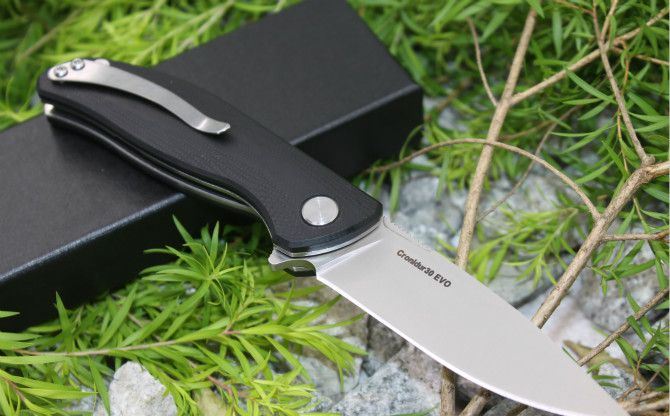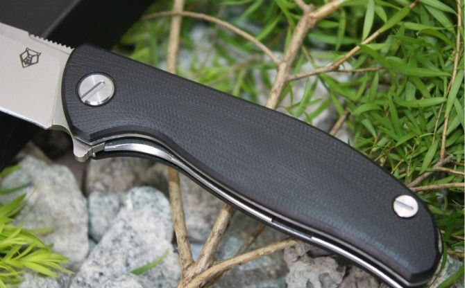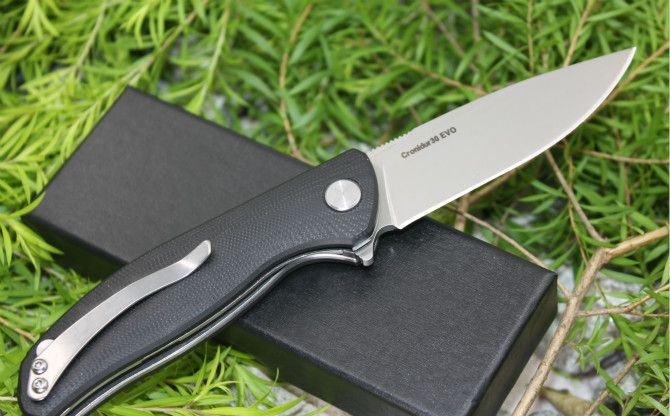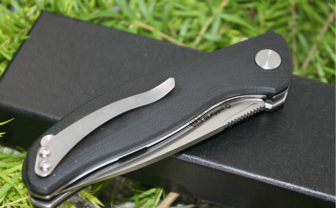 熊头CRONIDUR-30钢折刀 全长:198mm 叶片长度:82mm 封闭长度:119mm 刃厚:3.5mm 刀片表面处理:(缎面抛光)(沙光) 重量:205g含包装 刀片材质:CRONIDUR 30(真空热处理) 柄材:G10 硬度:58-59HRC