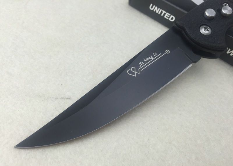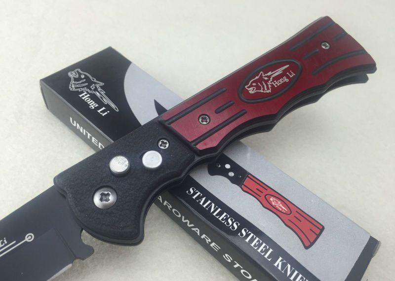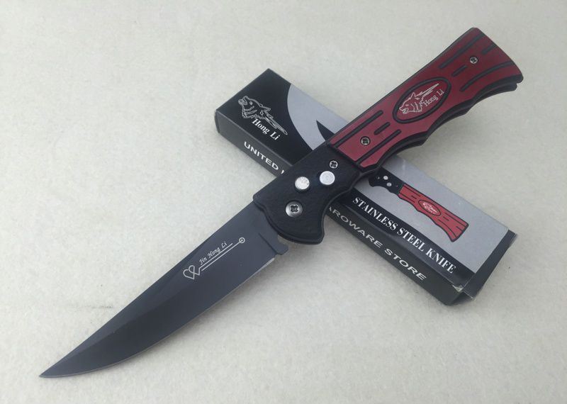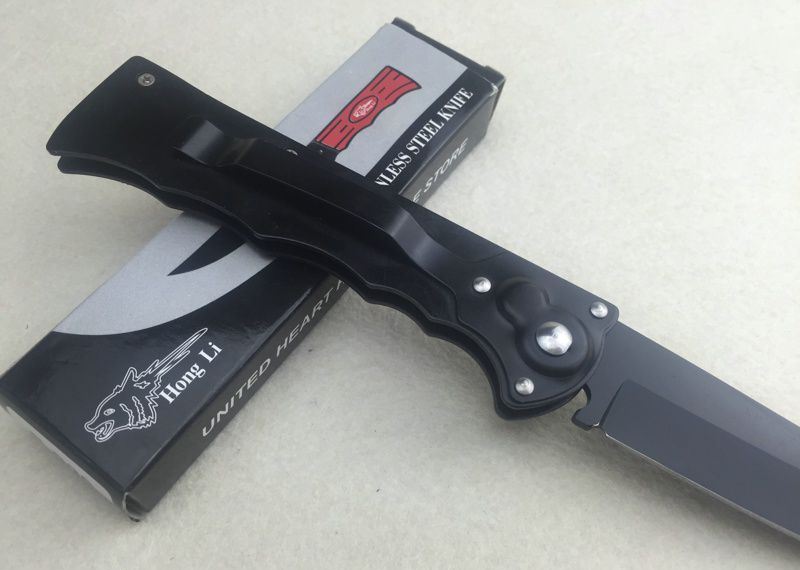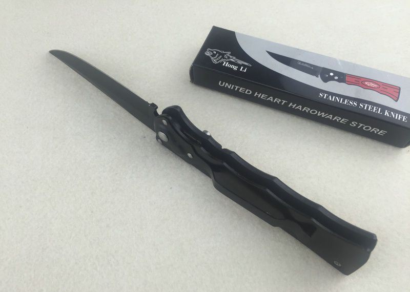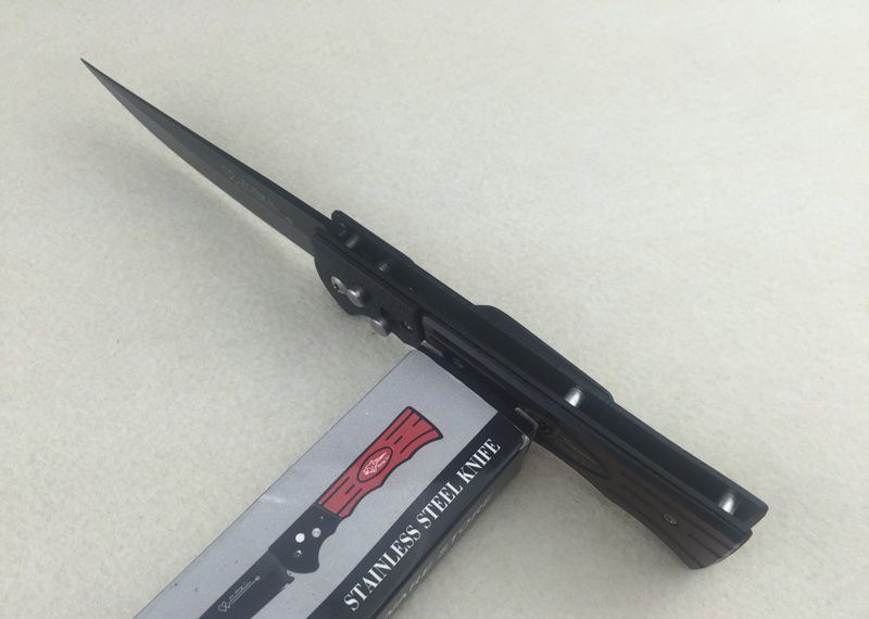 F220野狼弹簧跳刀 全 长:22cm 刃 长:9.5cm 刃 宽:2.4cm 刃 厚:2mm 刃 材:420 硬 度:56HRC 表 面:发黑 柄 材:不锈钢+铝材 重 量:180g(含包装)