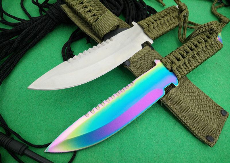 Hero绑绳军刀救生刀(砂光、彩钛) 全长:29.3 刃长:17 刃厚:0.4 柄长:12.5 刃材料:3铬13不锈钢 重量:260克