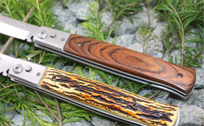 俄罗斯民族K01强力侧跳(彩木、仿骨柄) 全长:30CM 刃长:13CM 刃厚:0.23CM 刃宽:2CM 重量:200克 刃材:420不锈钢 柄材:仿骨柄+彩木柄