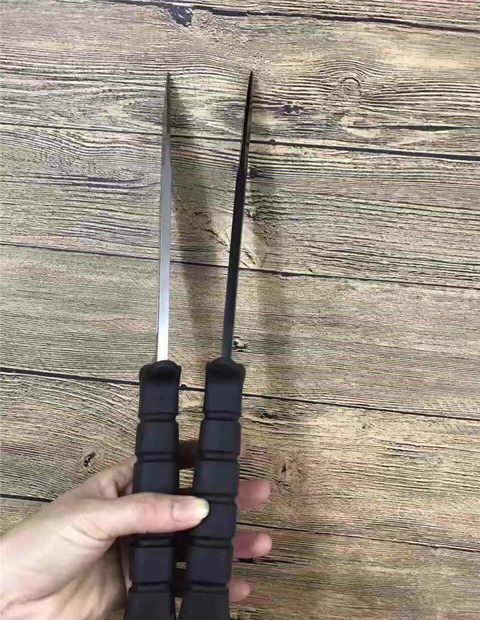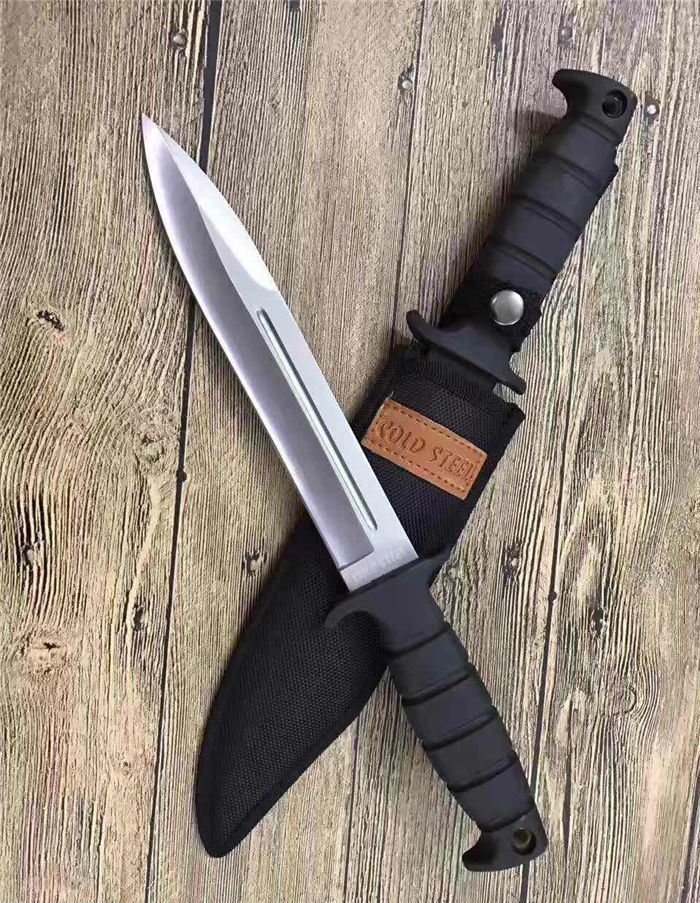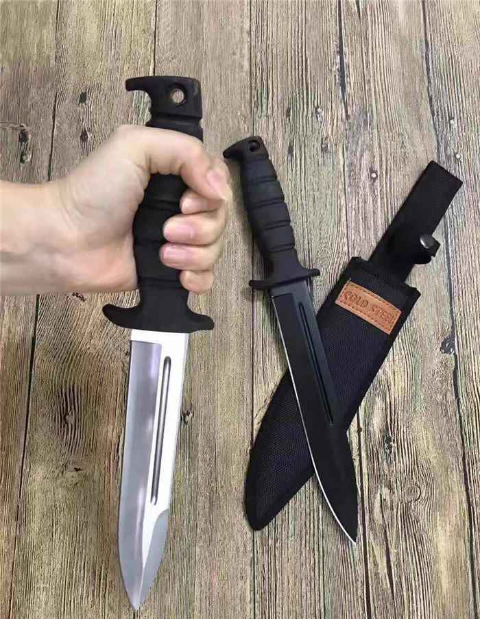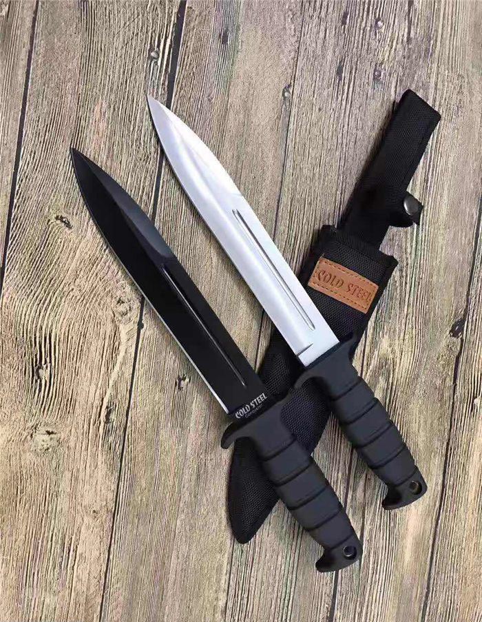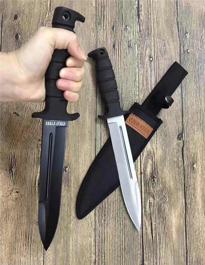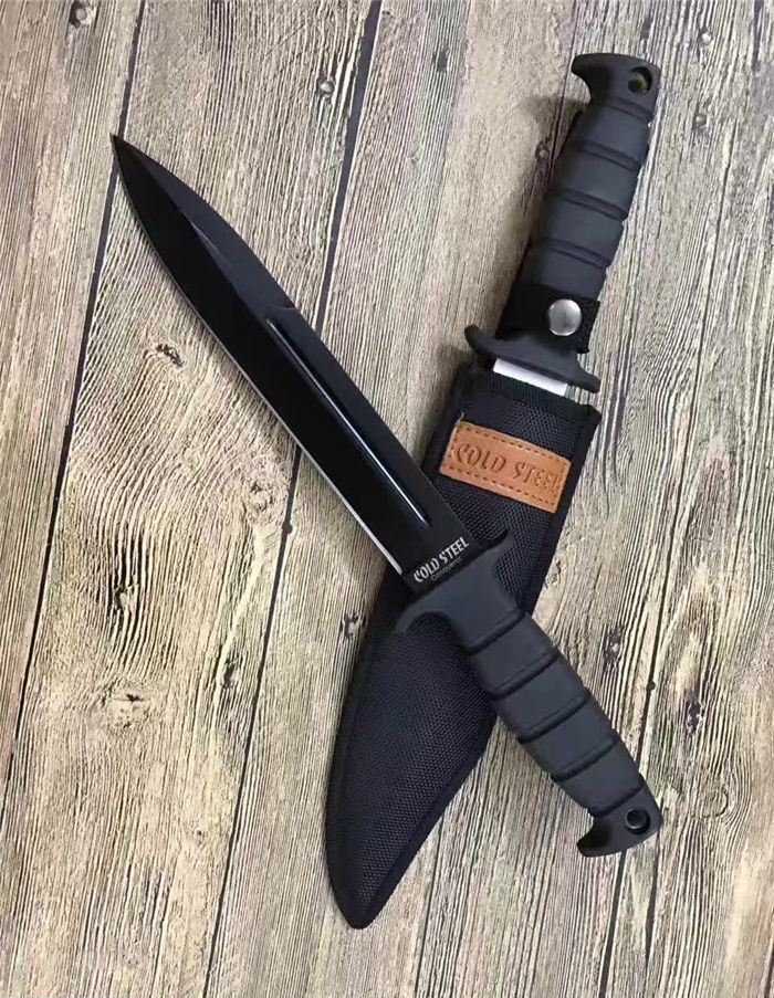 全黑版冷钢AK枪刺 全 长: 35cm 刃 长: 22cm 柄 长: 13cm 刃 厚: 6mm 刃 材: 440C 硬 度: 58HRC 重 量: 410g 表 面: 全黑 柄 材: ABS 刀 鞘: 尼龙