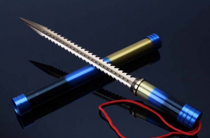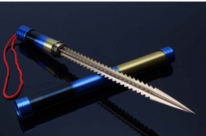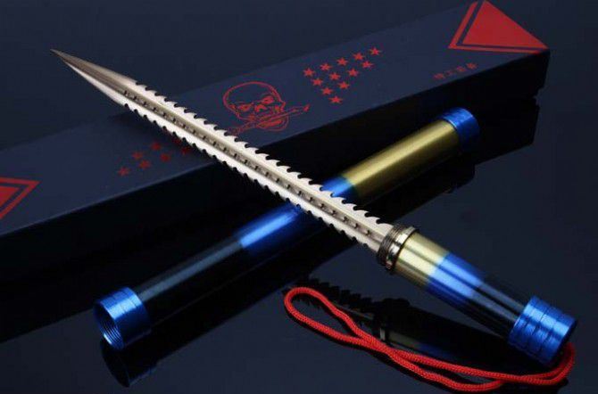精品炫彩四菱狼牙刺 全长:42cm 刃长:30cm 刃厚:2cm 刃宽:2cm 刃厚: 2cm 刃宽:2cm 材质:合金钢 刀鞘:铝 重量:900g含包装