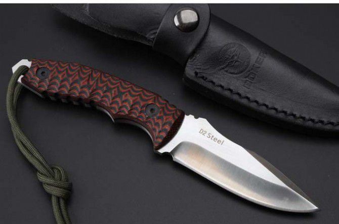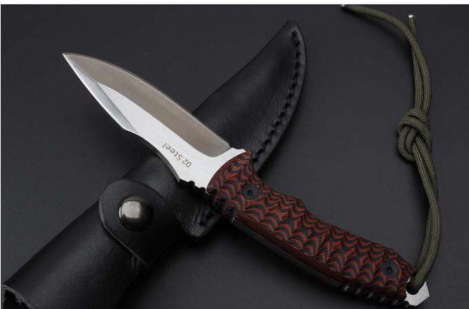 博克红鞭蛇小直刀 全 长:19.9CM 刃 长:8.8cm 刃 厚:0.5cm 刃 材:D2(硬度高,超凡耐磨性跟保持性) 硬 度:稳定数值 59—60HRC 柄 材:G10 表 面:钢本色精细研磨刀 鞘:真皮套