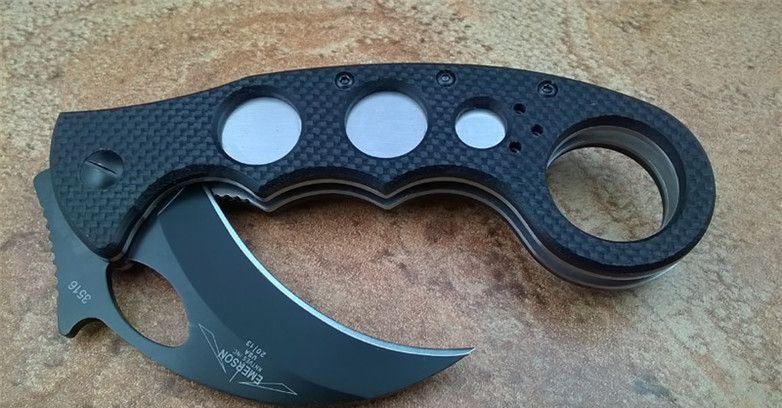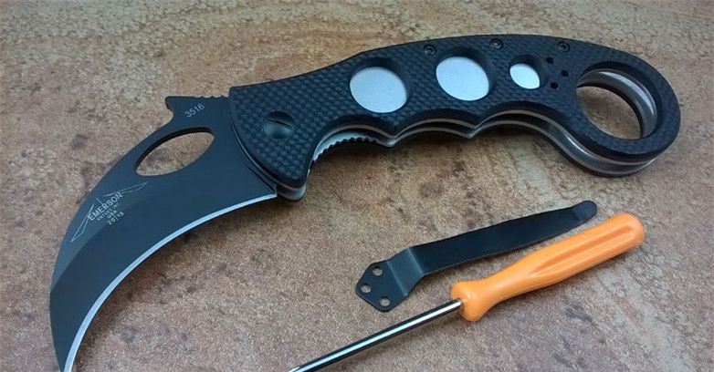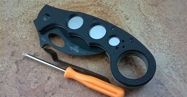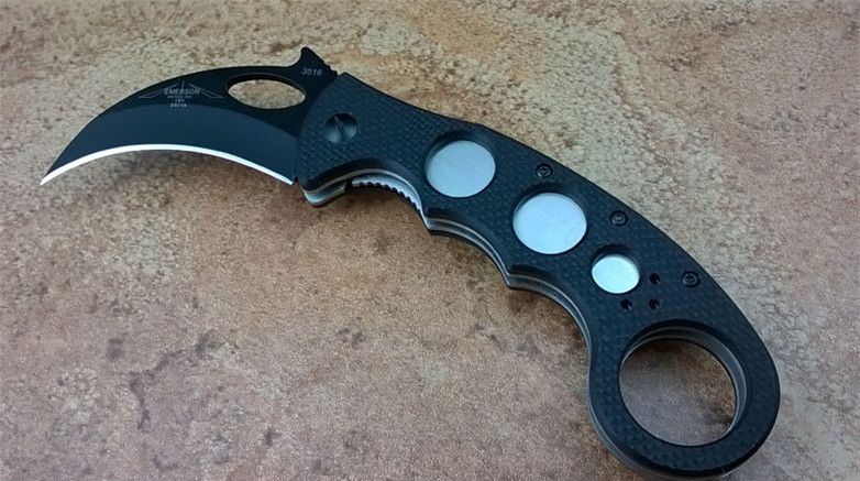 EMERSON爱默生公司其独有的快开钩设计,具有独特的使用方法,随身携带时,刀具通过口袋夹锁定在裤袋里。当您将食指插入刀柄边缘的洞孔时,随即向前从口袋中抽出。刀具大部分还挂在口袋里时,其独特的快开钩已经配合着已将刀刃迅速展开了。使得“鹰爪”离开口袋时就已经可以顺势向对手攻击THE ONE 款EMERSON鹰爪,采用进口440C刃材料,抛磨细致,快拉钩功能易用性超强,随刀付送左边背夹