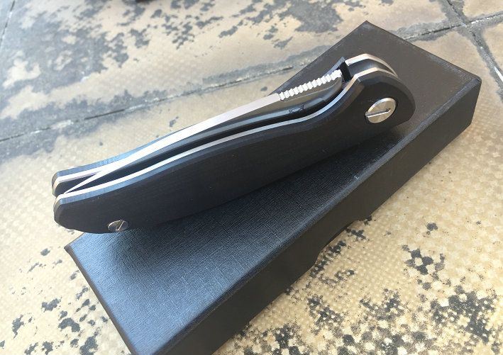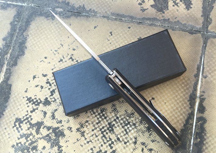 熊头95三色精品快开折刀 全 长:192mm 刃 长:85mm 柄 长:11mm 刃 宽:30mm 刃 厚:3mm 刃 材:9CR18MOV 重 量:130g (含包装物) 硬 度:58-59HRC 表 面:精细砂光 和石洗 柄 材:G10和钢片经CNC精雕加工。 刀 夹:不锈钢 锁 型:线锁。 螺 丝:所有螺丝420不锈钢硬度HRC45,全CNC精雕加工 结 构:线锁结构,内置平面滚针轴承垫片。 其 他:黑色天地盒.橙色,蓝黑.黑色.三以任选,绝对是高品质