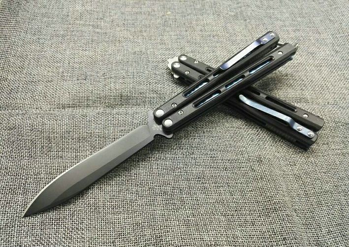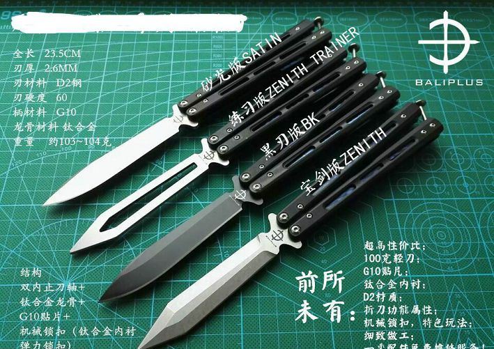 美国高品质蝴蝶51甩刀 全长:23.5CM 刃厚:2.6MM 刃材料:D2钢 刃硬度:60 柄材料:G10 龙骨材料:钛合金 重量:约94克