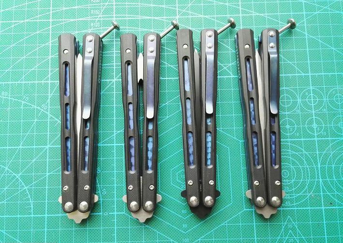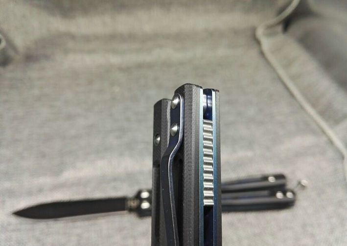 美国高品质蝴蝶51甩刀 全长:23.5CM 刃厚:2.6MM 刃材料:D2钢 刃硬度:60 柄材料:G10 龙骨材料:钛合金 重量:约94克 结构:双内止刀轴+钛合金龙骨+G10贴+机械锁扣(复杂设计)