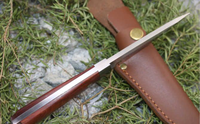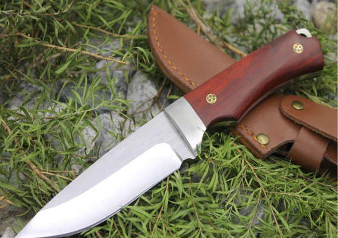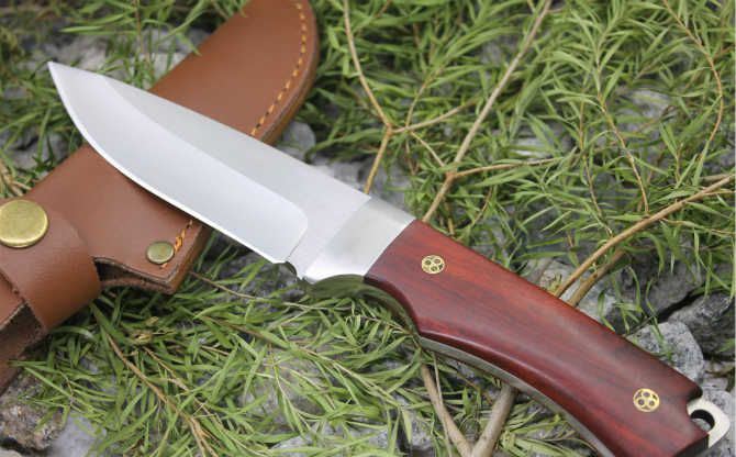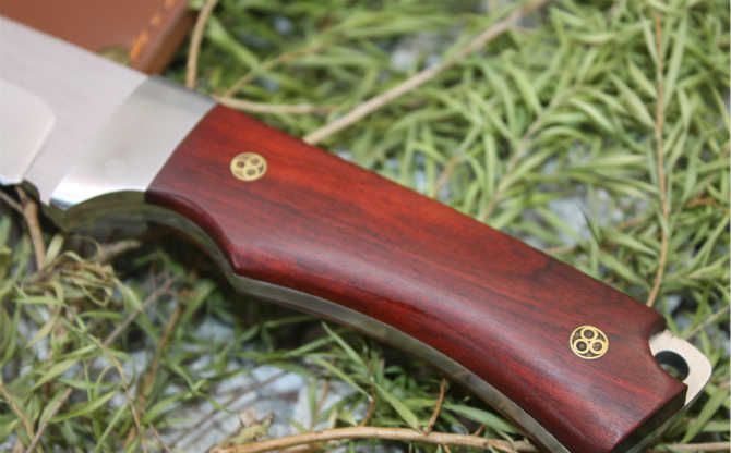 代工版小博弈红木柄直刀 刃材:8Cr18 全长:220MM 刃长:100MM 刃厚:5MM 刃宽:30MM 硬度:58-59HRC(真空油冷热处理) 表面:精幼砂光 柄材:印度红木 配件:纯铜品字型铆钉 刀鞘:皮套 刀重:250克
