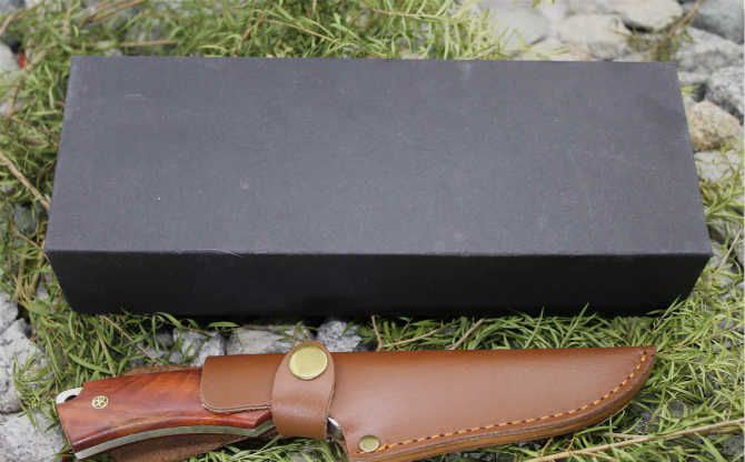 代工版小博弈红木柄直刀 刃材:8Cr18 全长:220MM 刃长:100MM 刃厚:5MM 刃宽:30MM 硬度:58-59HRC(真空油冷热处理) 表面:精幼砂光 柄材:印度红木 配件:纯铜品字型铆钉 刀鞘:皮套 刀重:250克 总重:约500克(包括黑色礼品盒等)
