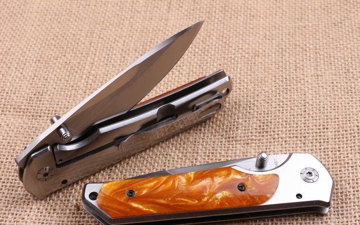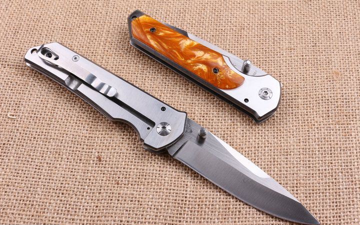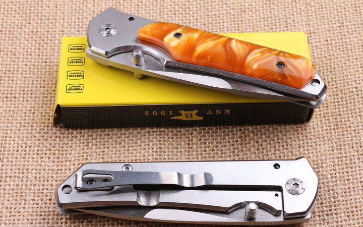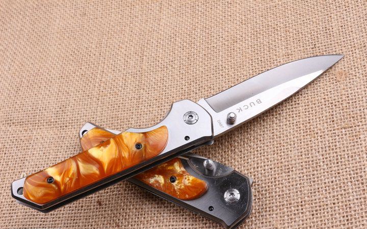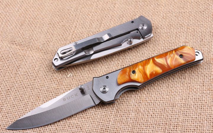 巴克DA87折刀 全 长:22.0cm 刃 长:10.0cm 柄 长:12.5cm 刃 宽:2.6cm 刃 厚:3.9cm 刃 材:440 重 量:200g(含包装) 硬 度:58HRC 表 面:拉丝伴沙光 柄 材:钢柄+彩色聚脂 锁 型:侧锁