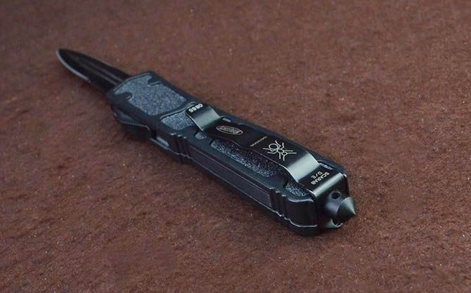 微技术黑蚁直出弹簧刀(黑色半齿) 全 长: 21.5cm 刃 长: 8cm 刃 厚: 2.5mm 刃 宽: 1.6cm 柄 长: 12.3cm 刃 材: 440 硬 度: 57HRC 刀 重: 169g 毛 重: 255g(含包装) 表 面: 拉丝+黑刃 柄 材: 全钢+防滑沙面 刀 鞘: 尼龙套 锁 闭: 直出弹簧刀 包 装: 彩盒子、尼龙套 备 注: 带玻璃锥、腰夹