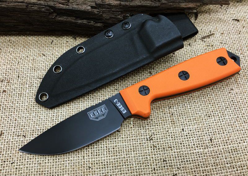 ESEE3战术小直刀 全长: 215mm 刃长: 97mm 厚度: 4.2mm 刃宽: 29mm 硬度: 57-58HRC 表面: 砂光/发黑 刃材: 7Cr17Mov 手柄: G10 包装: K-Sheath