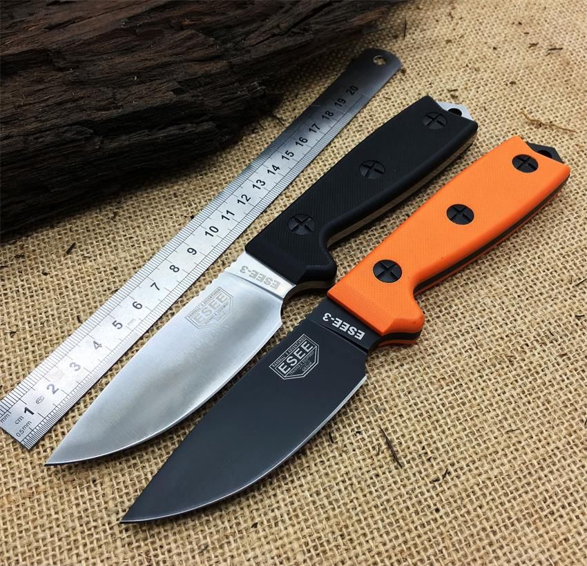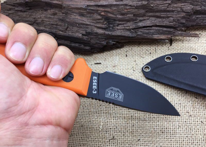 ESEE3战术小直刀 全长: 215mm 刃长: 97mm 厚度: 4.2mm 刃宽: 29mm 硬度: 57-58HRC 表面: 砂光/发黑 刃材: 7Cr17Mov 手柄: G10 包装: K-Sheath 重量: 250g(含套)