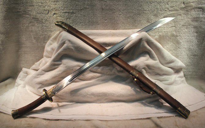 全长:90cm 刃长:71cm(26寸) 刃宽:3.7cm 刃厚:0.75cm 刃材:百炼花纹钢 柄长: 18.5cm 重量:2290克(含包装) 鞘材:梨花木、合金 柄材:梨花木、合金 硬度区间:59—60HRC 性能:手工精细研磨全开锋,削纸断竹 包装: 锦盒 备注:手工产品存在误差,规格仅供参考,请以实物为准! 温馨提示:不配刀架